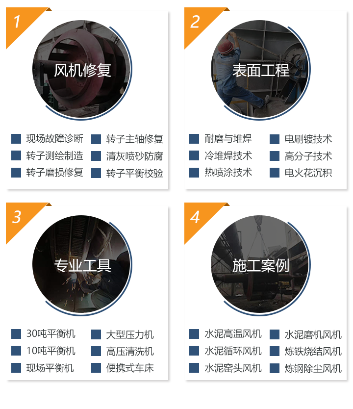 河南省史迪欧科技有限公司主要从事为钢铁、水泥、电力行业的风机生产制造和风机现场维修业务。公司拥有大型机械加工和机械制造设备,包括:直径4米的大型卧式车床、2000吨压力机、50mm卷板机、50吨行吊。风机生产和风机维修设备,包括:30吨、10吨、3吨、1吨、0.3吨平衡机,现场振动分析及动平衡校验设备。表面处理设备包括:超音速喷涂、电弧喷涂、等离子喷涂、自动埋弧焊等设备。经过十几年的不断完善和发展,公司在风机生产和修复技术积累了丰富的经验,目前,公司可以对叶片表面进进行耐磨堆焊、耐磨合金喷涂、耐腐耐磨陶瓷贴片,以满足用户的不同需要。风机转子修复内容包括:风机转子动平衡、叶轮表面磨损修复、更换转子叶片、风机主轴磨损修复、风机机壳磨损修复。