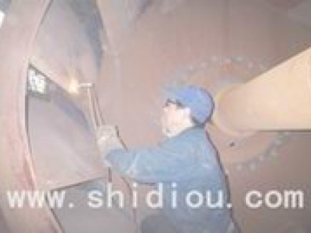 为了解决上述难题,我公司在不拆卸热风管道、风机机壳的情况下,派施工人员从人孔钻入风机内部,根据实际工况条件和叶片磨损情况,选择合适的堆焊材料及堆焊焊层的厚度,对磨损的叶轮进行现场修补及耐磨层堆焊。